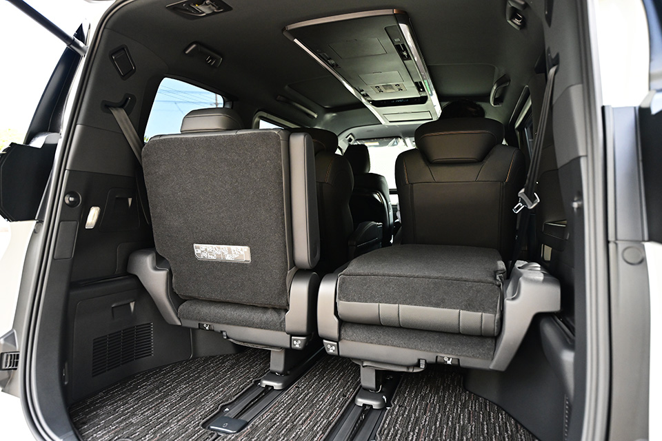 室内は「移動するラウンジ」と呼ぶにふさわしい快適性を追求。広々としたキャビンは、3列シートすべてに余裕を持たせ、長距離移動でも疲れを感じさせません。特に2列目にはエグゼクティブラウンジシートを設定し、オットマンや電動リクライニング機能によりファーストクラス級の寛ぎを提供。遮音材や防音ガラスを採用しているので、車内も静かで会話も捗ります。