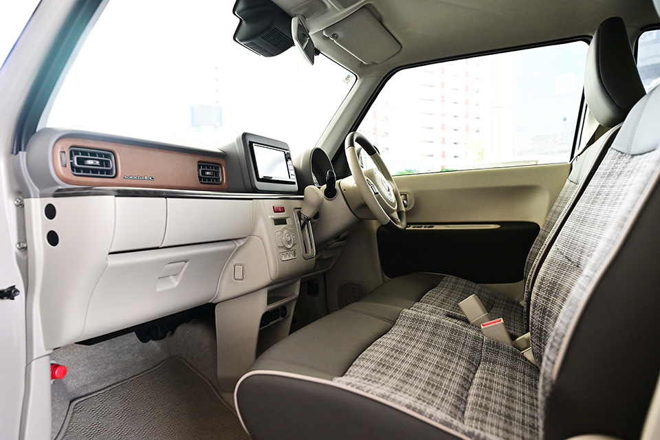 インテリアも「わたしの部屋」感覚で設計されており、木目調パネルやファブリック素材が温もりを演出。グレードによってはライトブルーやモカブラウンなど、また別の色使いが施されており、乗るたびに馴染んでいく空間に、日々のカーライフが充実します。